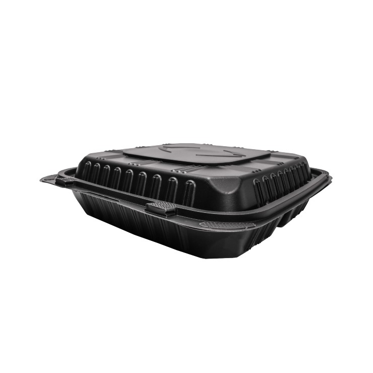Our 39 Series 9″ square hinge polypropylene container with two even compartments.